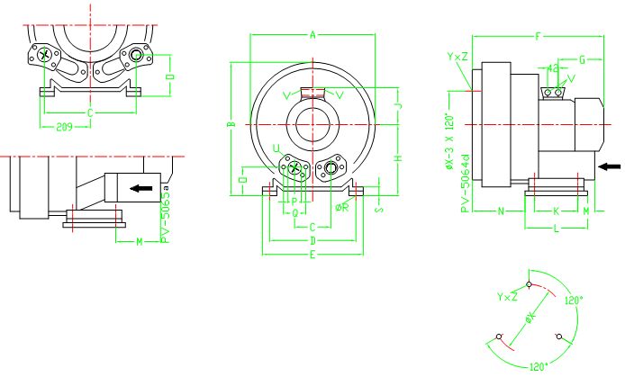 德冠品牌高壓風(fēng)機(jī)尺寸表: