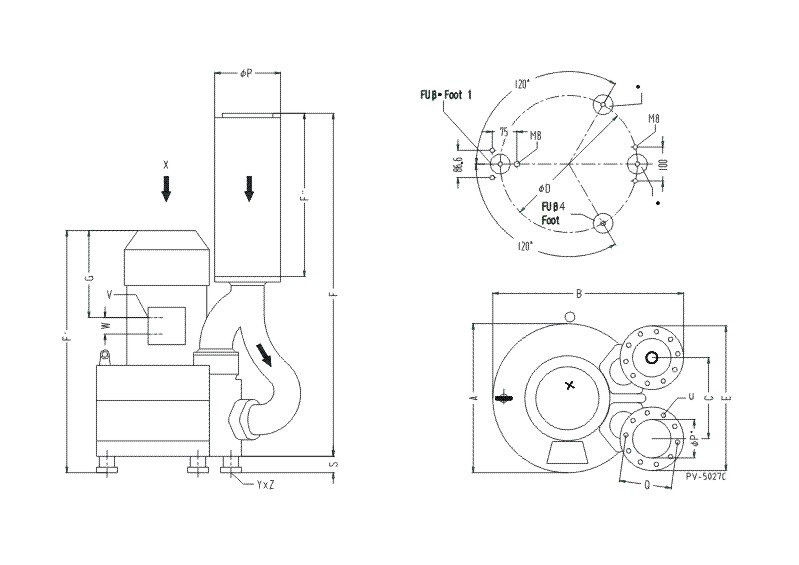 德冠品牌高壓風機尺寸表: